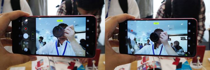 「ZenFone 5Q」は、フロントカメラもデュアルレンズになっている。左が超広角カメラで、右が広角カメラ