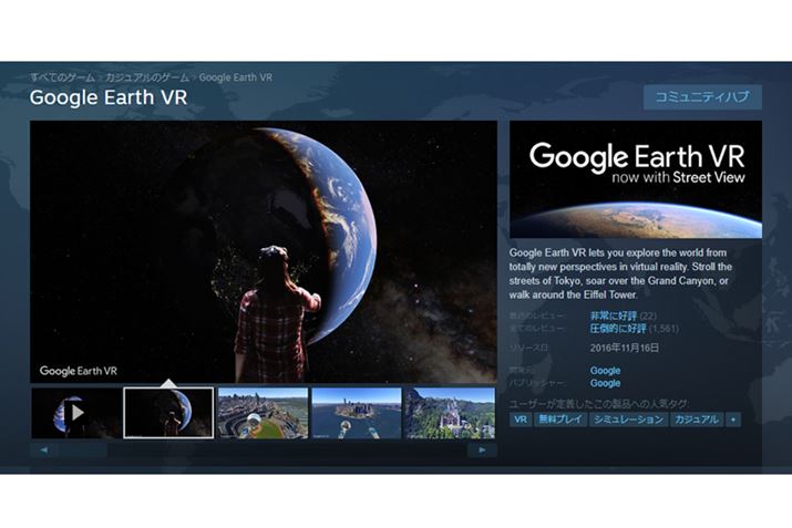 「Google Earth VR」。グーグルが提供するVRゲーム。仮想現実で再現した世界を旅できる。建造物や地形がとてもリアルに再現されており、思わず見入ってしまう
