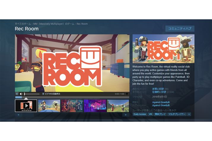 「Rec Room」。卓球、ダーツ、ゴルフ、ドッジボール、お絵描きといったゲームをプレイヤー同士がVR上で楽しめるソーシャルVR。コミュニケーションツールとして、VC(ボイスチャット)や、さまざまなエフェクトも用意されている