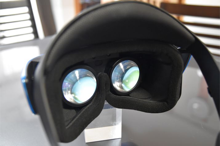 ヘッドセットの装着部分。2.89型液晶ディスプレイを2つ装備し、解像度は2880×1440ドット(単眼が1440×1440ドット)。肌に触れる部分には、クッションが付いている