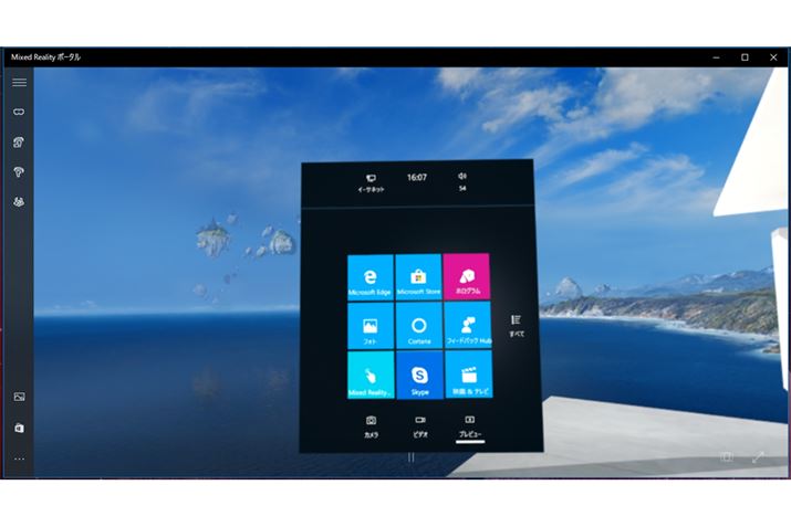 モーションコントローラーを操作すると、このようなメニューが表示される。「Skype」や「Microsoft Edge」は、ここからすぐに起動できる