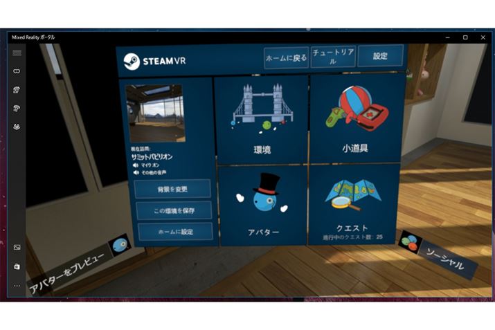 以上のように、Windows MR for Steam VRをインストールし、SteamVRのチュートリアルを進めて、SteamVR HOMEに送られると、チュートリアルが完了。なお、SteamVR HOME内でクエストを選ぶと、任意のチュートリアルなどが現れるが、今回の記事では割愛させていただく。