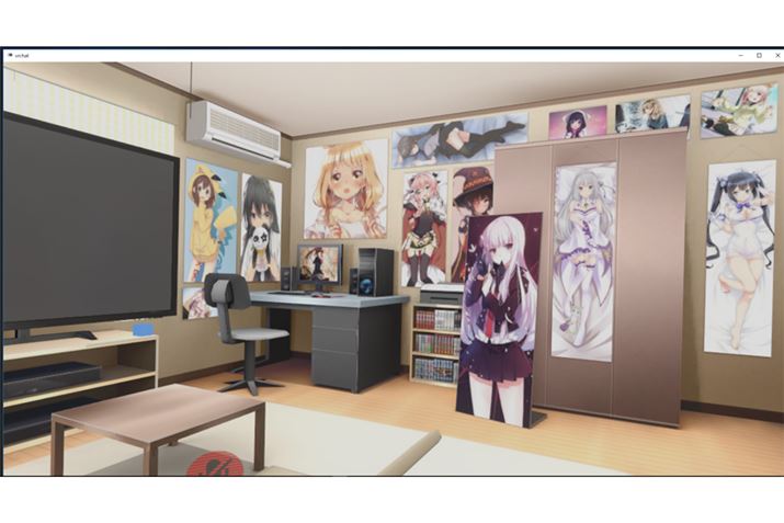 日本人の部屋を再現したようなワールドを訪れてみた。所せましと貼ってあるポスターは、作成者の趣味だろうか? 没入感が高いため、ついリアルの部屋にいるような感覚で、見わたしてしまう。「間違えて、他人の家に上がってしまったような気まずさ」まで感じてしまった