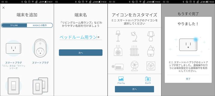 「Kasa for Mobile」は、TP-LINKのネットワーク機器をスマートフォンで管理するアプリです。起動したら、「HS105」をアプリに登録して名前とアイコンを決めます。注意したいのは、ここで登録した名前を音声操作時に声に出して使うということ。ですので、言いにくかったり長い名前で登録するのは、避けたほうがよいでしょう。