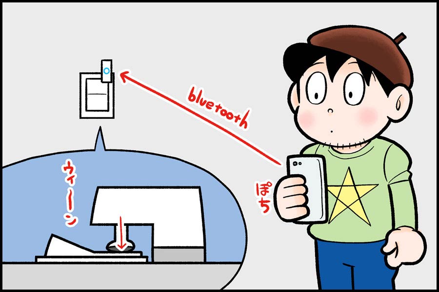 Bluetoothでスマホと接続して、スマホアプリのボタンを押すと……