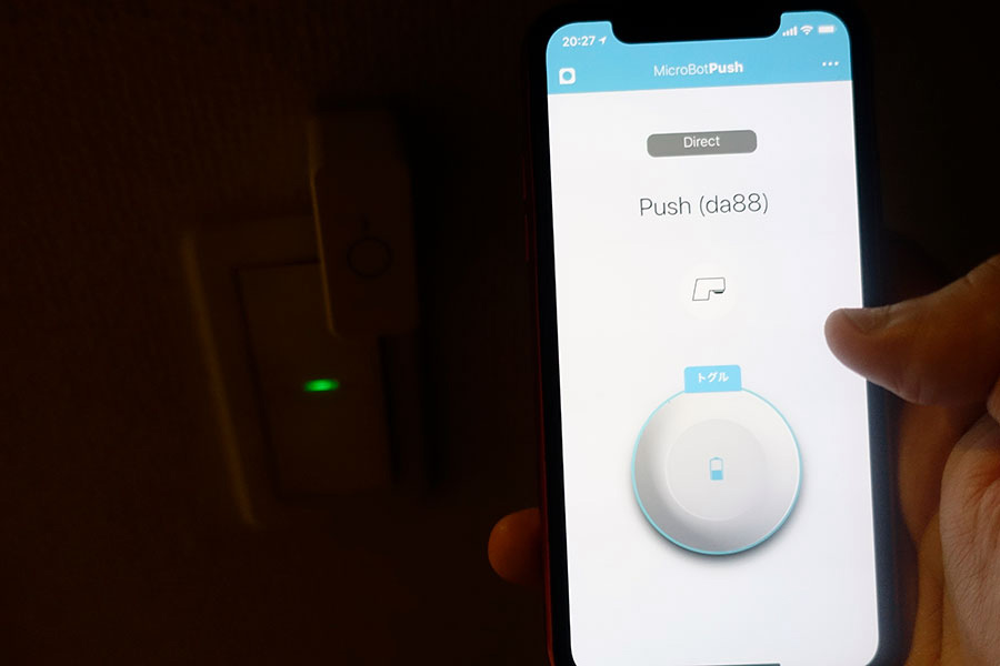 これまた「両面テープでスイッチとアームを貼り付ける」という、ものすごーくアナログな方法ですが、「マイクロボット プッシュ 2nd Generation」1台で、スイッチを「オン」「オフ」できるようになりました。