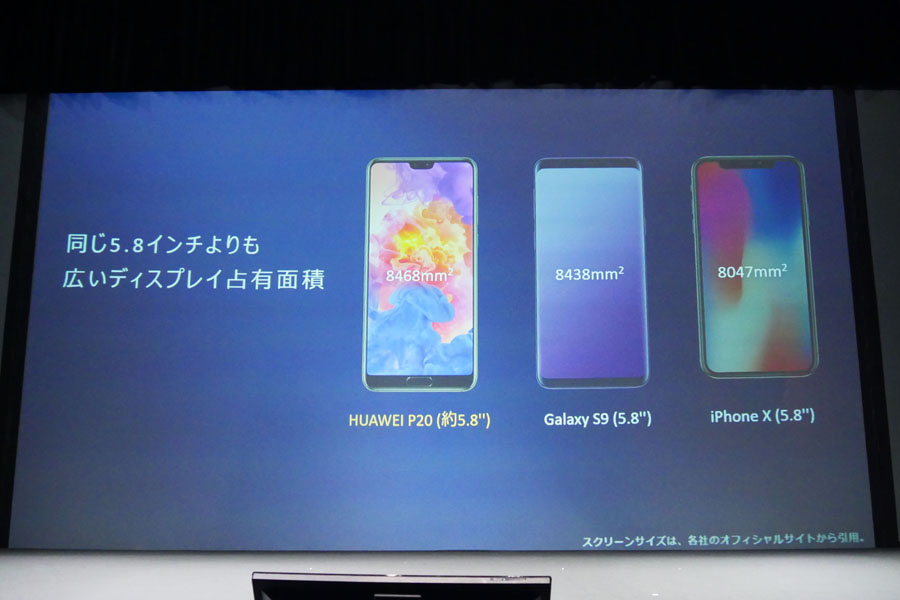 ディスプレイの占有面積はサムスン「Galaxy S9」やアップル「iPhone X」よりも大きい
