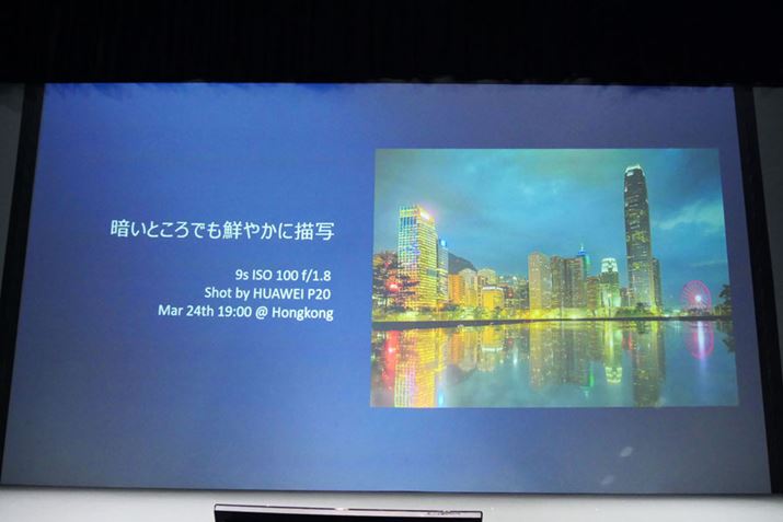 大きなイメージセンサーに加え、AIを活用した手ブレ補正「AIS」により夜景も非常にきれいに撮影できるとのこと。「AIS」を搭載する「P20 Pro」を試したときは、手持ちでもブレることなく高画質な夜景の写真を撮れたので、「P20」にも期待したいところ