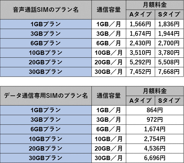 通信容量は全タイプ共通で、毎月1GBから30GBまでの6通り。ソフトバンク網でも大容量の料金プランを選べるのが特徴だ。なお、Aタイプのデータ通信専用SIMには、SMS機能が付属する。