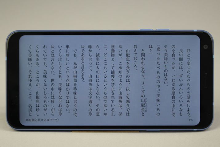 実用的な明るさまで輝度を低下させた状態で、電子書籍を表示させたところ、写真の左下の一部に明るさのムラが現れた
