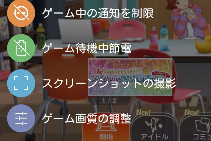 ゲーム中の通知の制限や、ゲーム待機中の節電設定、スクリーンショットの撮影、ゲーム画質の調整といった。LG製スマホに以前から備わっていた機能は、本機にも搭載されている