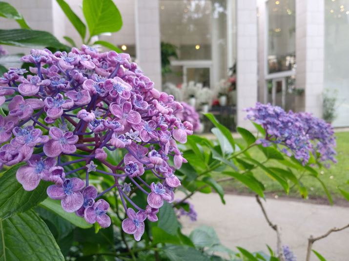 手前のあじさいを数十cmまで接写し、背景を大きくぼかすことを狙った。ピントを合わせたあじさいの色味や解像感は良好