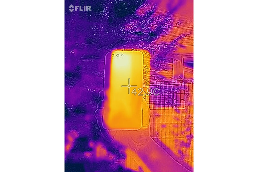 15分後にスマホの表面温度を計測すると42.9℃で、約3℃減少。手で触った表面は“熱い”から“ちょっと熱い”へと変わりました。欲を言えばもう少し冷却してほしかったですが、ファンタイプだとこのあたりが限界なのかもしれません