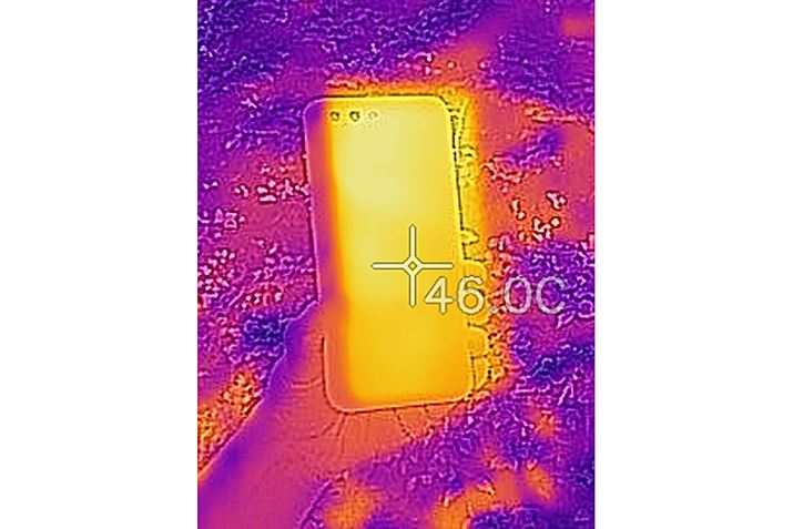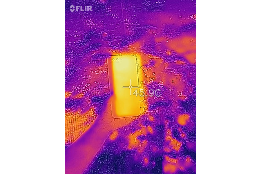 再びめちゃくちゃ熱くなったスマホの背面。温度は45.9℃です