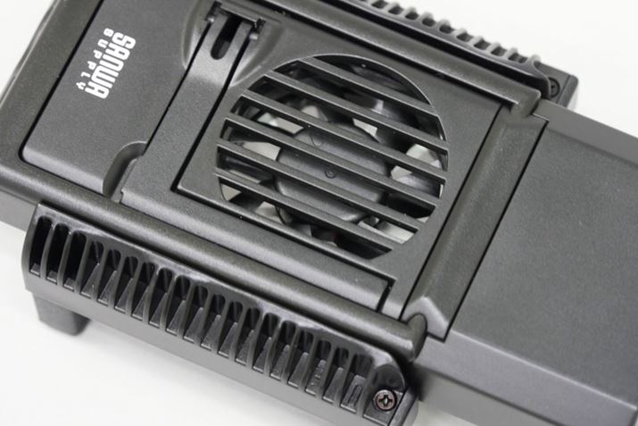 背面には、放熱するためのミニファンを搭載。動作音は、耳を近づけないと聞こえないくらい静かです
