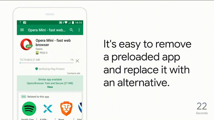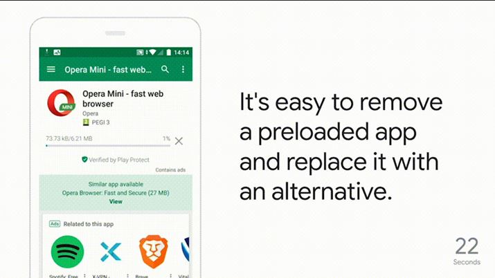 さらには、端末にプリインストールされているGoogleのアプリを削除し、他社製のアプリをインストールする方法を公式ブログで解説。Androidは、ユーザーに自由な選択肢を与えていることを強調しています。