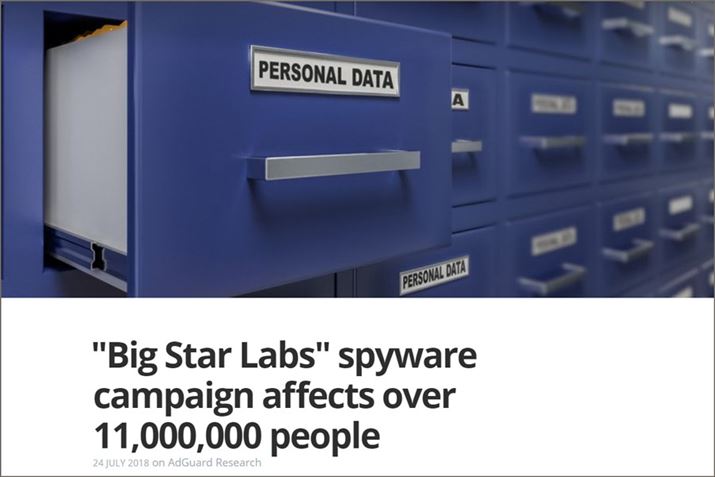 広告ブロックやプライバシー保護向けツールを開発するAdGuardが、iOS/Android向けアプリやChrome/Firefox向け拡張機能に、ユーザーのブラウザー閲覧履歴を収集するスパイウェアが仕込まれていることを発見しました。スパイウェアが仕込まれたアプリや拡張機能をインストールしたユーザー数は1100万人以上と見られています。また、これらのアプリや拡張機能すべては、Big Star Labsというひとつの企業によって提供されていたこともわかりました。