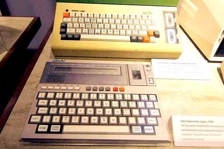 ソニーの「Typecorder」。遠藤氏は現物も所有しているが、これはシリコンバレーのComputer History Museumに展示されていたものを、遠藤氏が撮影した写真。後ろに見えるのは、スイスの「Scrib Portable」