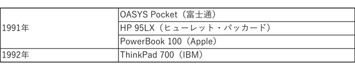 そして1992年には、前々回の記事に登場した竹村譲氏が話していた「IBM ThinkPad 700」(IBM)が発売されます。トラックポイントを備えたノートPCで、OSにはDOS/Vを採用。日本でずっと主流だったPC-98に対して、ThinkPadがブランドになっていくきっかけになりました。