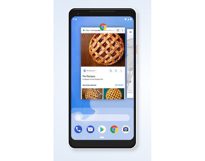 そんな中、Android 9 Pieでは、縦長ディスプレイにも対応した新しいユーザーインターフェイスが用意される。ホーム画面を上にスワイプすることで、直近で使用した複数のアプリのプレビュー画面を大きなサムネイルで表示して、素早く切り替えられる。また、その下には検索窓も配置されているので、縦長ディスプレイでも片手で操作しやすくなった。