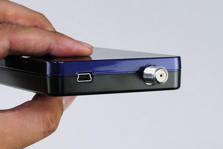 側面にはmini USBポート(Mini-B)とアンテナ入力端子を搭載。ちなみに、USB2.0ケーブル(A-miniB)は付属しますが、アンテナケーブルは付属しません