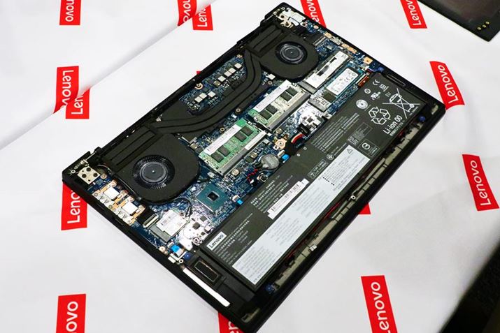 熱に関しては、ThinkPadではおなじみの、ふくろうの羽から着想を得たという第10世代の「オウル(ふくろう)ファンテクノロジー」により、マイナス2.5dBの静音化と高い冷却性能を実現。ファンハウジングとヒートパイプを一体化することで排熱効率も高めている。また、CPU用とGPU用のファンを連結し、共有することで、冷却パフォーマンスの最適化も図っている。