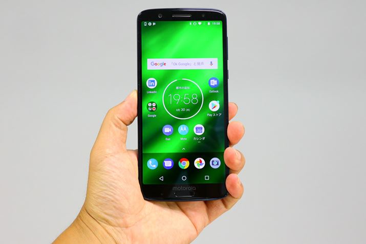 5.93インチの縦長・大画面ディスプレイを搭載するMoto G6 Plus。「Snapdragon 630」や4GBのメモリー、64GBのストレージを備えており、スペックだけ見るとミドルハイに分類される1台だ