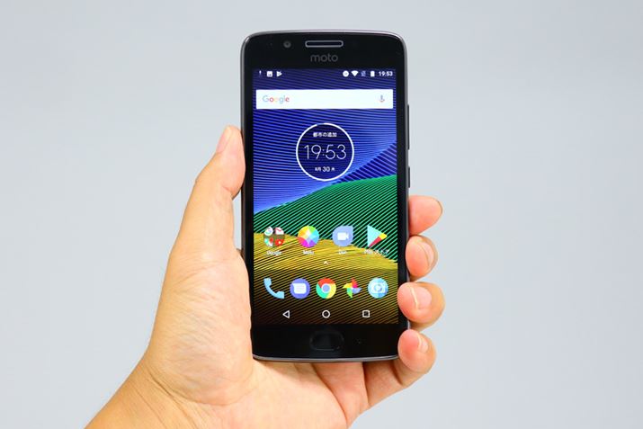 5.0インチのディスプレイを搭載するMoto G5。スペックは控えめだが、片手でも操作しやすいコンパクトさが特徴