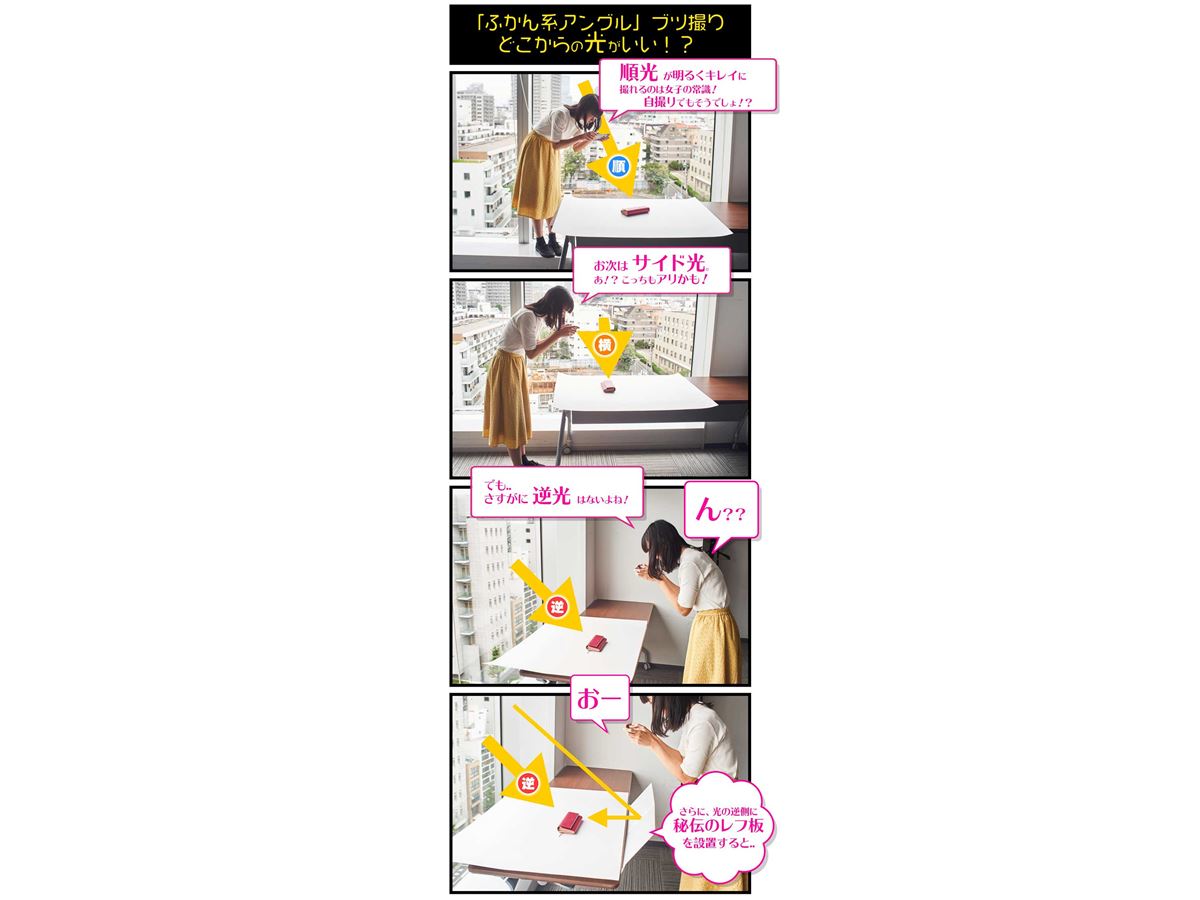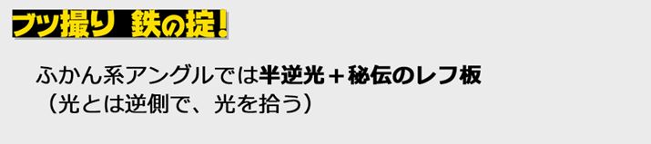 プロがふかん系アングルのブツ撮りをする場合、逆光ベースで光を組み立てることが多いです。
