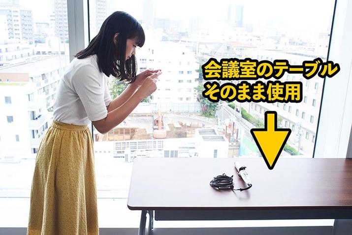 会議室のテーブルにヘアアイロンをそのまま置いて、しえるさまに撮ってもらいました。