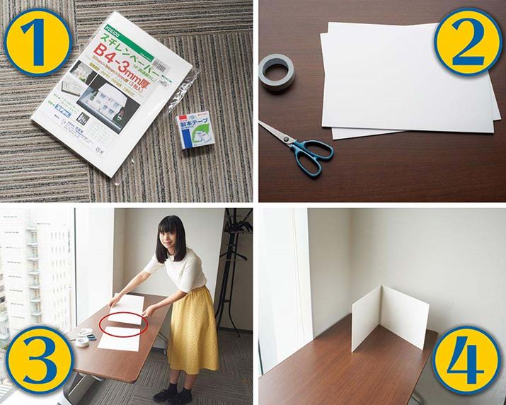 (2)B4スチレンボードは1組(=2枚)使います。製本テープを切るハサミを用意してください。