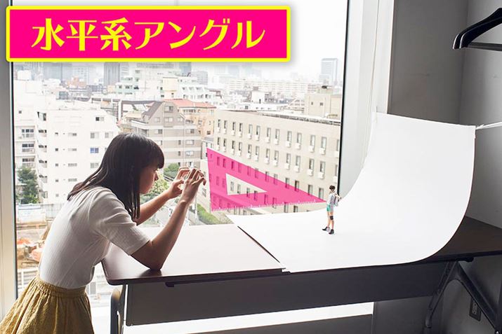 最後に、水平系アングル(0〜30度)で、高さのある被写体のブツ撮りをします。