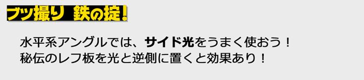 一見よさそうに見えますが、合う被写体と合わない被写体があり、ド素人には、少々ハードルが高そうです。それに派手な背景が商品(被写体)の白や金属部に写り込み、正しい表現ができないことがあります。