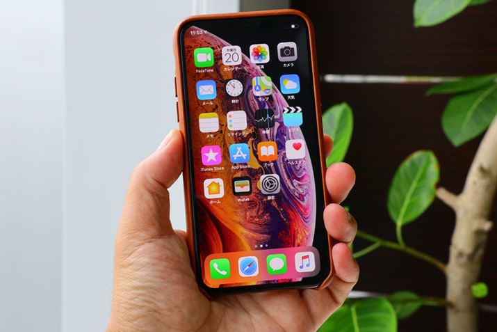 純正ケースを装着。5.8インチという大きな画面サイズとコンパクトなボディを両立しているので、片手で使いたいという人はiPhone XSを選びたい