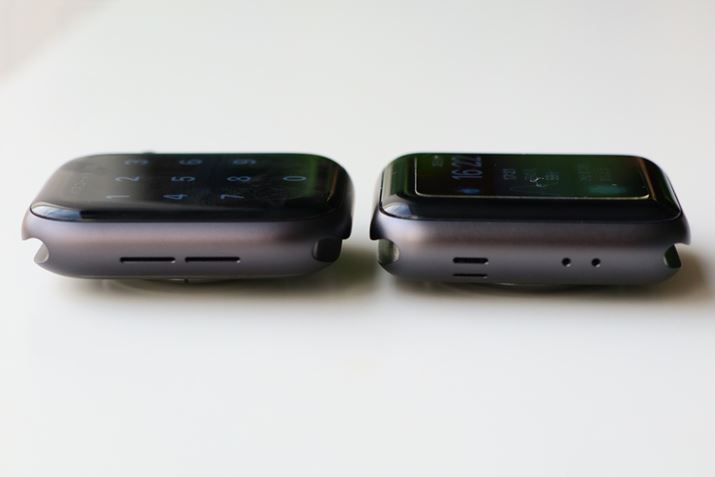 左がApple Watch Series 4で厚さは10.7mm、右がApple Watch Series 3 Nike+で厚さは10.7mm