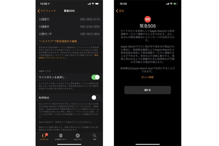 転倒検出は65歳以上のユーザーで有効になる(初期設定で年齢を選べる)。誤作動しないか、機能を有効にして転んだふりをしてみたが、動作はしなかった