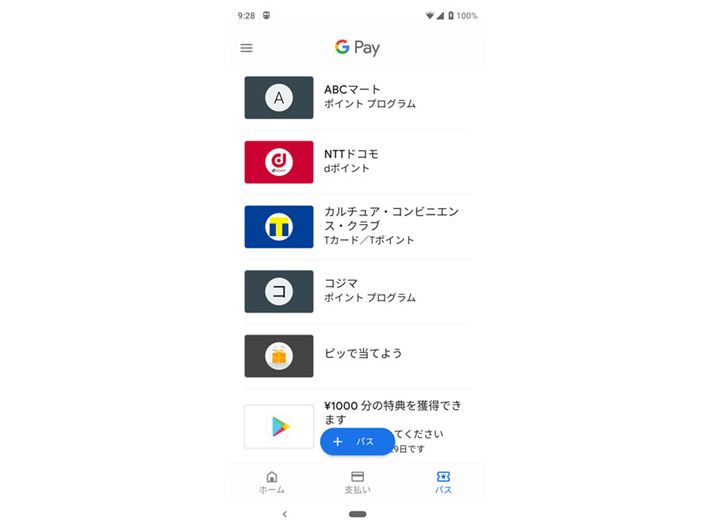 本機は、FeliCaポートを搭載しており、国内の主要な電子マネーサービスが利用できる。また、本機の発売前のタイミングで、電子マネーアプリ「Google Pay」の機能強化がなされ、各種電子マネーへのチャージや、さまざまなポイントカード機能を取り込めるようになった。筆者が利用している電子マネーやポイントカードを片っぱしから登録してみたが、サイフに貯まっていた大手企業のポイントカード類はほとんど登録できた。