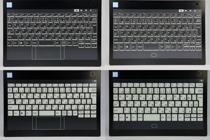 新モデルはE-Inkディスプレイにキーボードが表示されるようになり、日本語キー、英語キーを含む、多彩な言語のキーボードに対応し、設定で切り替えられるようになった。タッチパッドを常に表示しておく「クラシック」と、使うときだけ表示する「モダン」の2パターンが用意され、さらにブラックとホワイトの2色から選べるので、合計4種類のデザインパターンから好みのものが選べる。このバリエーションも、E-Inkディスプレイならではの点で、前モデルにはなかった特徴だ。