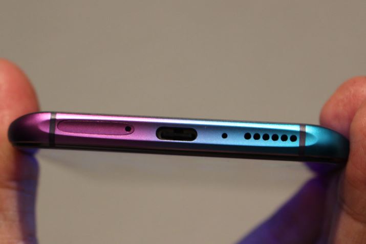 充電およびデータ転送用のUSBポートはUSB Type-Cとなっている。フレームまでグラデーションになっているのがわかる