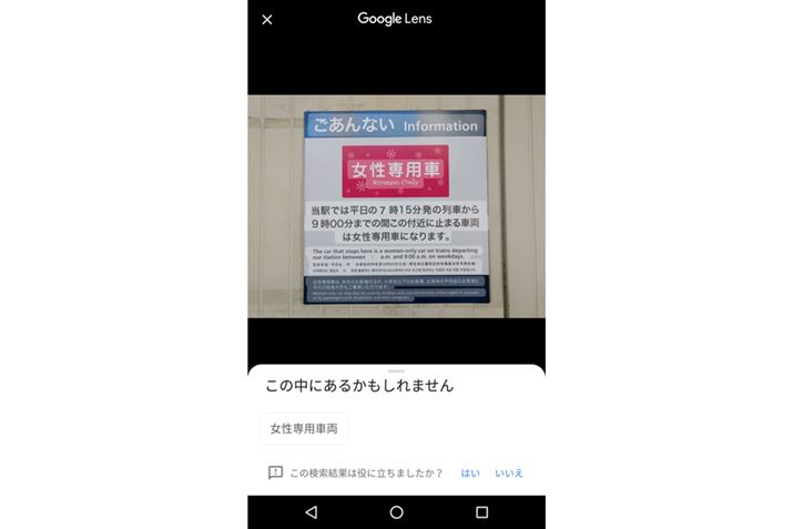 ポスターに書いてあるテキスト情報を解析して、関連がありそうな検索候補を一覧表示してくれる。タップするとそれぞれの検索結果が表示される