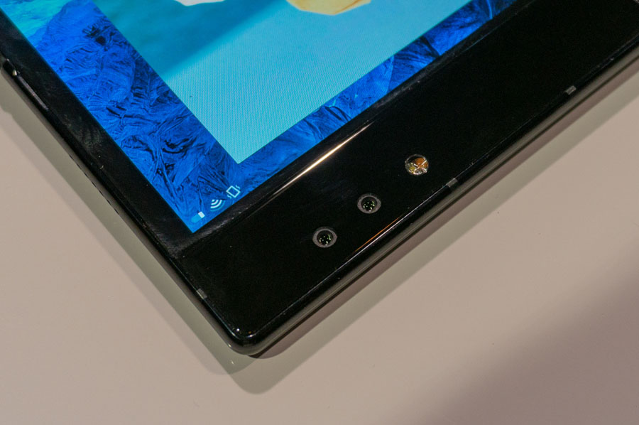 ディスプレイ上部に1600万画素と2000万画素のカメラを1機ずつ搭載。ディスプレイ展開時はフロントカメラとして使えるほか、画面を折りたためばリアカメラにもなるという仕様です