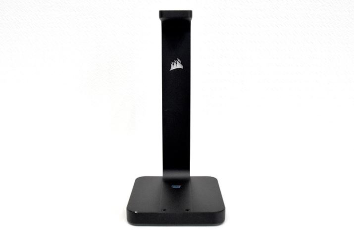 ヘッドセットスタンドは、その名の通り、ヘッドセットをかけるためのもの。PCデスクの端に置く“脇役”のような存在であるため、シンプルなデザインの製品が多いが、このST100 RGBは、ひと味違う。なんといっても、最大の魅力はスタンド中央にある、光る「Corsair」ロゴマーク。これは、Corsairファンにはたまらないだろう。