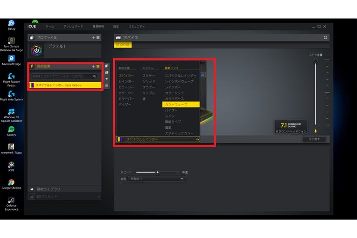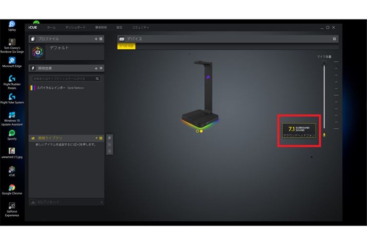 CEUの画面で、右に表示されている「7.1サラウンドヘッドフォン」というタブをクリックするだけで、7.1chバーチャルサラウンドの設定を切り替えられる