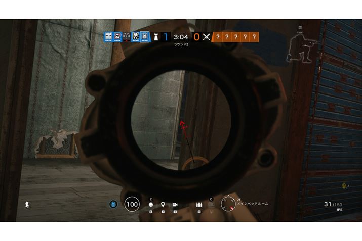 「Tom Clancy's Rainbow Six Siege」での防衛側のスクリーンショット。音で敵に位置が伝わってしまうゲームなので、しゃがんで移動しないとすぐに殺されてしまう