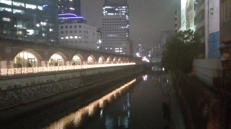 夜景を遠景で撮影。こちらも照明との明暗差を処理しきれなかったようで、全般に白くぼんやりとした写りだ