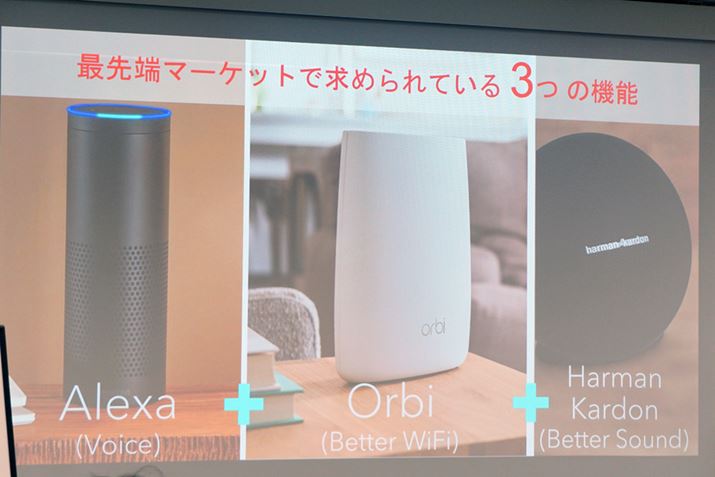 こういった市場ニーズを背景に、1台でトライバンド対応のメッシュWi-Fi子機にもなり、ネットワーク品質を高めると同時にAlexaとHarman Kardon製のスピーカーシステムによる高音質な音声ストリーミングサービスも楽しめるデバイスとして開発されたのが「Orbi Voice サテライト」というわけだ。