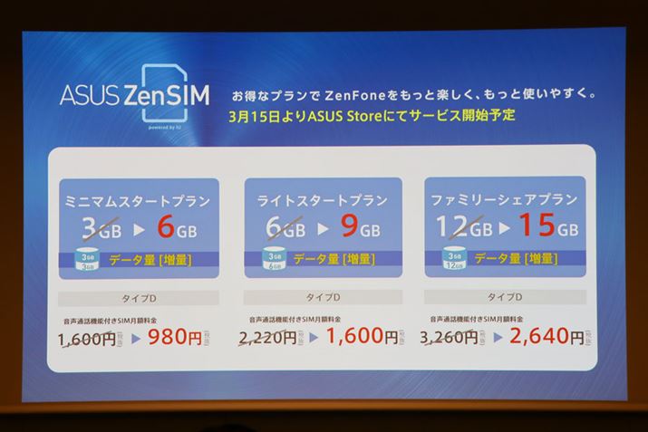 このほか、公式オンラインストアおよびオフィシャルストアであるASUS Store Akasaka限定で、オリジナルSIMパッケージ「ASUS ZenSIM powered by IIJ」(音声通話パック)を3月15日に発売することも発表。
