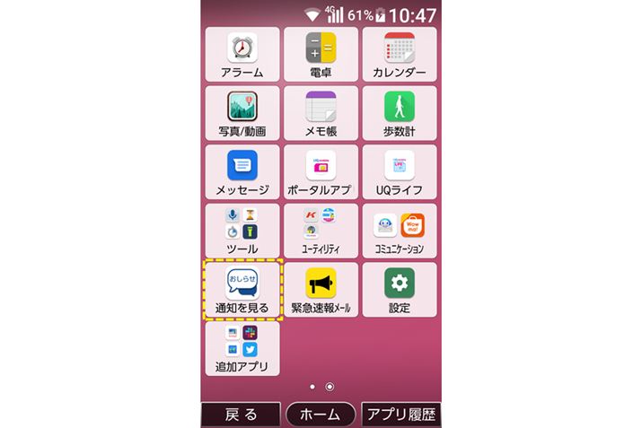 しかし、本製品ではタップだけで通知パネルが開閉できるショートカットアイコンを用意したり、標準アプリもタップだけで操作できるようにしたりすることで、操作方法がわからずに困るような場面が極力排除されています。タップすべき部分がはっきりしているテキストが主体のインターフェイスも含めて、初めてスマホを手にする人や複雑な操作が苦手な人に向けた、心配りを感じました。