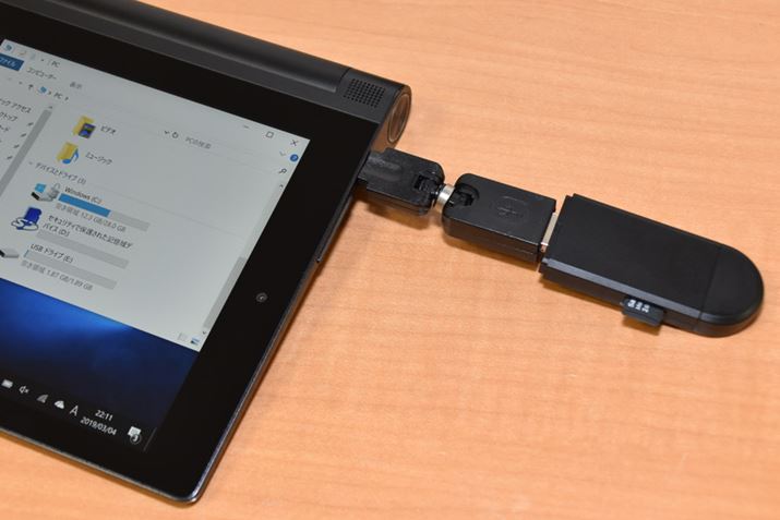 専用のUSBケーブルを持っているなら、直接パソコンに接続することができる。こちらも、microSDメモリーカードがUSBドライブとして認識される