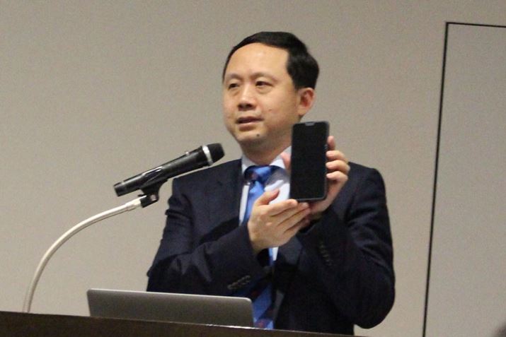 MWC2019で公開された5G対応の試作機を手にするOPPOのヘンリー・タン氏。5Gスマホの日本市場への投入はまだ少し先になりそうだ